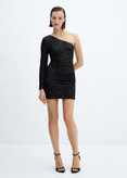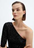 پیراهن نامتقارن پولکدار با طراحی کوتاه و اندامی،